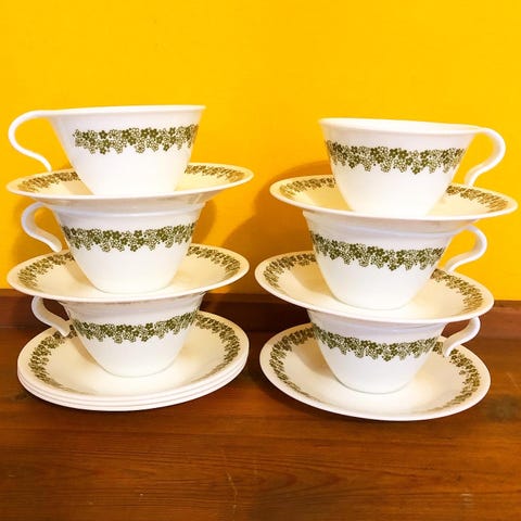 Porcelæn, Kopper med undertallerken, Le Poec-Laval, Sælger disse 2 helt intakte og supper romantiske og smukke blå 8-kantede kopper og undertallerkner med perlemønster rundt i kanten på undertallerknerne og på koppernes øre.
