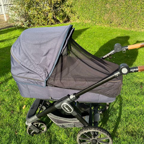 Der er desuden indbygget ryglæn i barnevognskassen, så baby kan sidde op og følge med, når han/hun er gammel nok til det. Der udover kan kalechen åbnes bagtil med indbygget insektnet, så der kan komme bedre ventilering, ligesom bedre ventilering kan opnås ved at åbne spjæld i barnevognskassen.