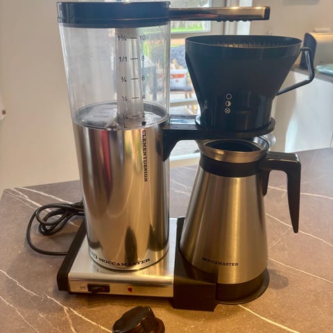 Flot og solid Moccamaster fra Technivorm med termokande, så kaffen holder sig varm uden brug af varmeplade.