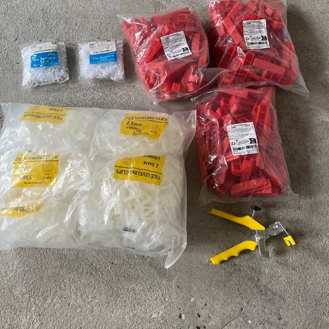 Moderne og effektivt afrettersæt til lægning af fliser. Ergonomisk trækskinne.
