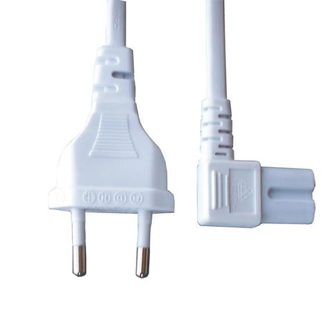 Eurostik strømkabel med vinklet Euro-stik | hvid (CEE7/16 – C7) | Hvidt 230V strømkabel med side-vinklet Eurostik. Velegnet til brug bag en væghængt fladskærm, eller generelt hvor der er begrænset plads.