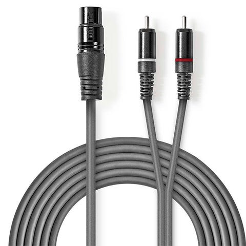 XLR til RCA stereo kabel (XLR hun - RCA han) (1x 3-Pin XLR, 2x RCA) | Fleksibelt XLR til RCA lydkabel med robust lås og høj signalstyrke, perfekt til musikinstrumenter, mikrofoner og forstærkere. | PRIS-MATCH!