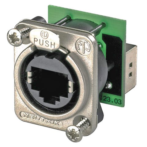 Neutrik Ethercon chassis bøsning til Cat 6 UTP (NE8FDY-C6) | Ethercon chassis bøsning med Neutrik stik til udendørsbrug med en IP65 bedømmelse | PRIS-MATCH!