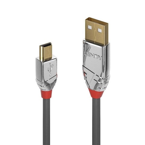 Cromo USB 2.0 kabel (USB A – Mini B/5p) | Høj kvalitets USB mini kabel fra Lindy Cromo serien. Kablet levere en stabil forbindelse helt op til 7.5 meter og kan overføre data med op til 480mpbs. | PRIS-MATCH!