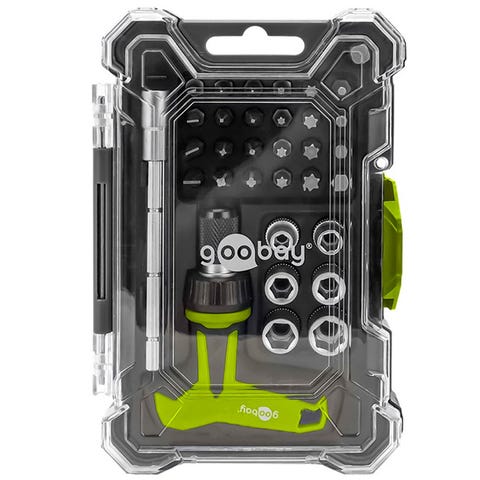 Skruetrækkersæt - 26 dele Bitsæt | Kompakt skruetrækkersæt med 26 dele, skraldefunktion og magnetisk bit-holder. Robust, stabelbar opbevaringsboks, ideel til præcisionsarbejde og reparationer. | PRIS-MATCH!