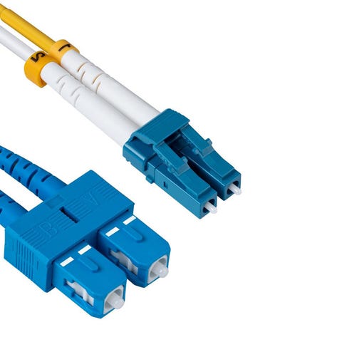 LC-SC Singlemode duplex OS2 optisk kabel | Fiberoptisk kabel med LC-LC stik og hastighed op til 1 Gbit Ethernet og op til 40 km. længde. Kablet er et Duplex kabel, dvs. til to-vejskommunikation. | PRIS-MATCH!