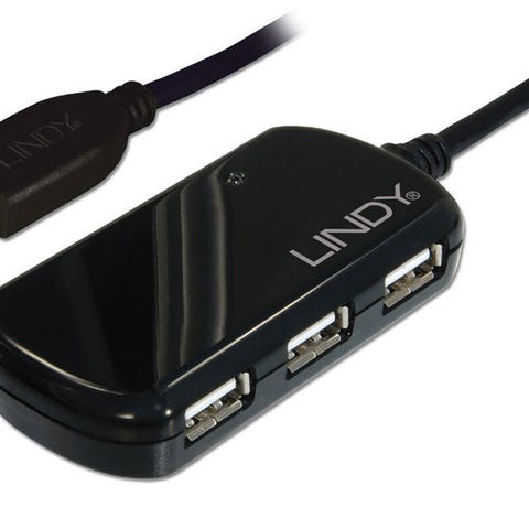 Lindy USB 2.0 Booster med 4-port hub | 12 meter
