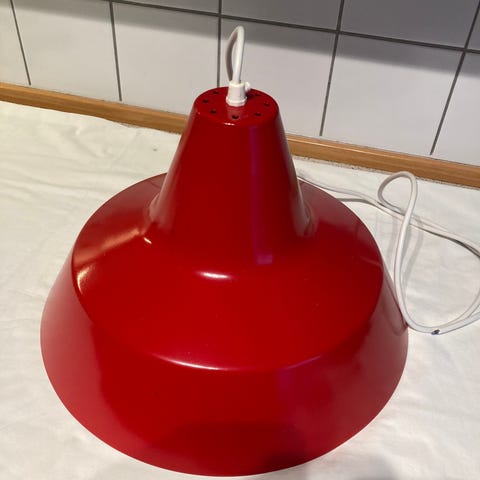Sort værkstedspendel fra Louis Poulsen. Monteret med porcelænsfatning og sort stofledning. Diameter 35 cn. Kan sendes.