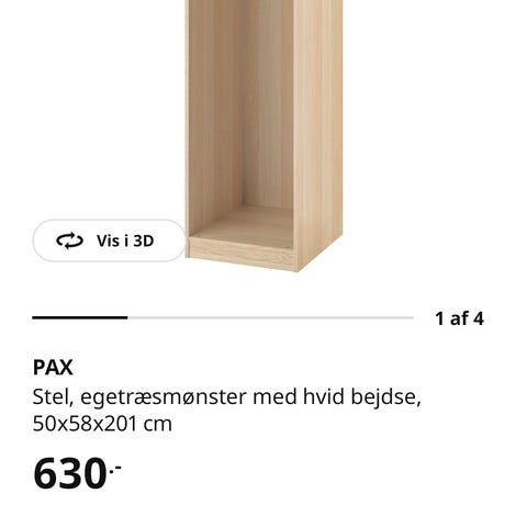 IKEA PAX skab sælges på grund af plads mangel. Den har små mærker hist og her men ikke nogen store skræmmer eller noget man lægger meget mærke til. Fungerer som den skal. Den er inklusiv bøjlestang, 1x kurv og 5 hylder. Enkelte hylder har set bedre dage, men intet der ændre på funktionen eller er i øjenfaldende. Kom og hent den på Amager nær Amager Hospital for 250kr.