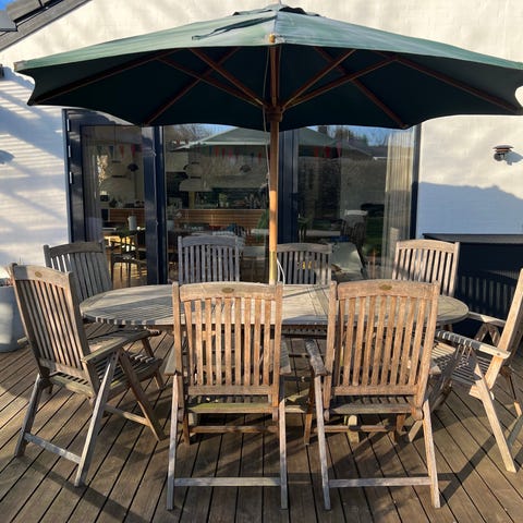 Kerteminde havemøbelsæt i teaktræ og hvid, Ø150