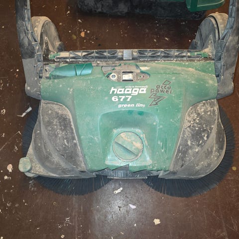 Sælger denne Haaga 255 manuelle fejemaskine, som fungerer perfekt.