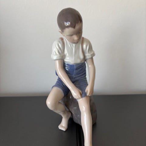Porcelæns figur, Dreng på sten, B&G, Sød Bing og Grøndahl figur, “dreng på sten” 20 cm høj