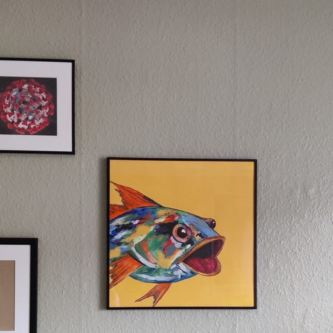 Farverigt og strukturrigt abstrakt maleri af dansk kunstner David Bjerre. Unikt værk med kraftige farver og tydelig signatur. Indrammet og klar til ophæng.