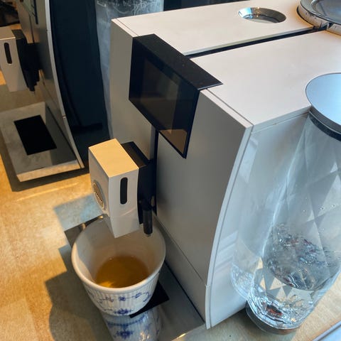 Den er nyserviceret, fungerer perfekt og laver en rigtig god kop kaffe hver gang. Perfekt hvis du vil have cafékaffe derhjemme uden besvær.