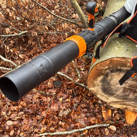 Løvsuger-funktion med kværn, der klipper bladene så de fylder mindre i den medfølgende beholder.