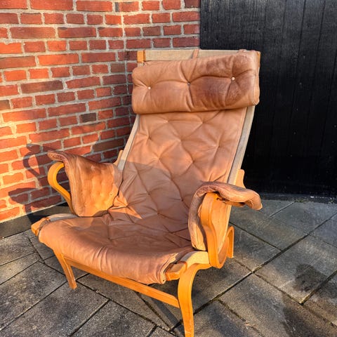 Pæn og velholdt Pernilla læder lænestol, designet af Bruno Mathsson i samarbejde med Svenske Dux .