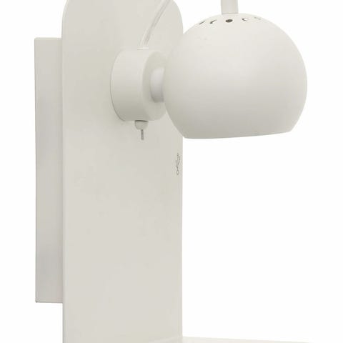 Sælger 2 stk. Frandsen Ball væglamper i metal med hylde og USB i mat grå. Købt i ILVA.