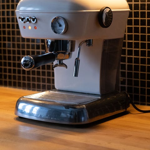 Ascaso espressomaskine i sort med bund og detaljer i stål. Maskinen har frontbetjening med flere knapper, trykmåler og separat manometer på fronten. Udstyret med damprør til skumning af mælk og aftagelig vandtank på siden. Drypbakke i metal under bryggeenheden. Velegnet til brygning af espresso og mælkebaserede kaffedrikke i hjemmet.