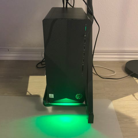 HP Omen stationær pc i hvidt kabinet med sidepanel i glas