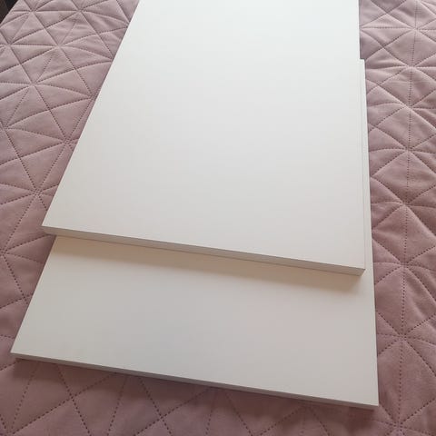 Hylderne kan kub købes i pakker med 2 stk., så vi har 1 til overs. Så hvis du gerne (som os) vil have tre hylder i dit udtræk er der et godt tilbud her. Nypris 1100 for to.