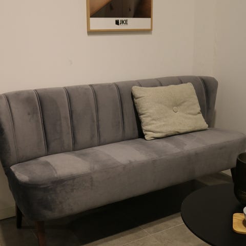 Grå velour sofa