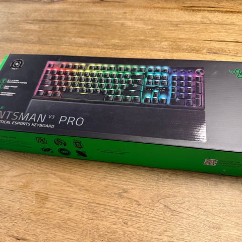 Razer Huntsman V3 Pro Tenkeyless tastatur i sort. Mekanisk gamingtastatur uden numerisk tastatur (tenkeyless‑layout) med Razer analog optisk switch‑teknologi. Tastaturet har fuld RGB‑baggrundsbelysning, mediemølle og dedikerede knapper til mediestyring. Forbindes med kabel og er egnet til brug ved pc og gaming, hvor der ønskes et kompakt layout med avancerede indstillingsmuligheder.