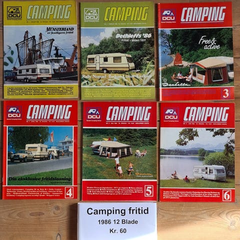 DCU Camping Fritid magasiner årgang 1987, sæt med 12 blade. Magasinerne omhandler camping og fritidsliv med artikler, billeder og annoncer relateret til campingvogne, rejser og udstyr. Egnet til samlere eller som reference til campinghistorie fra slutningen af 1980’erne.
