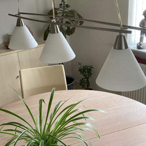 Giver et flot lys og passer godt enten over et lille spisebord/køkkenbord eller stemningsbelysning i et hjørne i gang/stue.