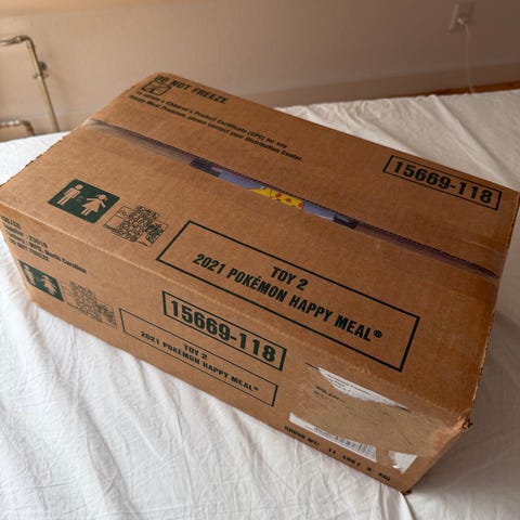 En pakke indeholder kort med Pokémon-motiver, og hver pakke indeholder Pikachu der spiser burger.