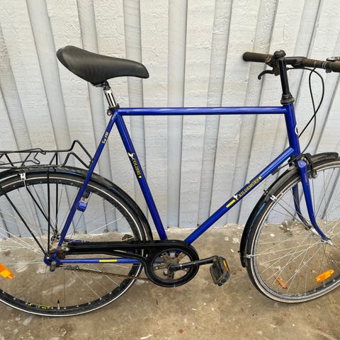 Herrecykel 28"hjulstr ..7gear (Gear skal justeres.) God dæk. Håndbremse og fodbremse reflekser. Fodstøtte. Forlygte og baglygter. Kører Klar kan afprøve... Stelnr på sidste billede