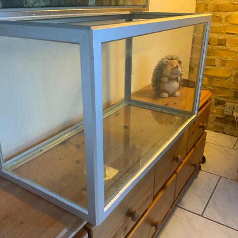 Akvarium med hvidt skab