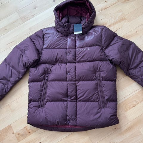 Tommy Hilfiger herre vinterjakke i størrelse XL. Jakken er sort og har hætte.