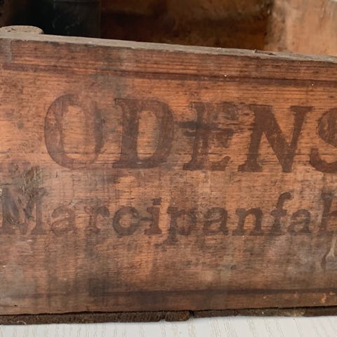 Charmerende gammel trækasse med originalt tryk fra Slots Mineralvand i Odense. Kassen har en flot, autentisk patina med slid, der giver masser af sjæl og historie – perfekt til dig, der elsker vintage og retro indretning.