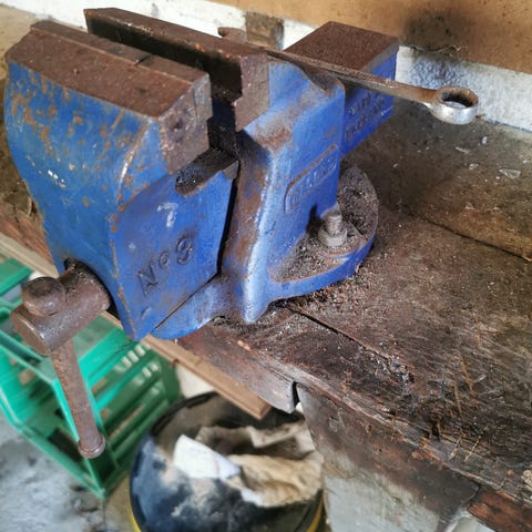 Denne rustikke skruestik fra Record udgave nr. 2 er lavet i blåmalet støbejern.