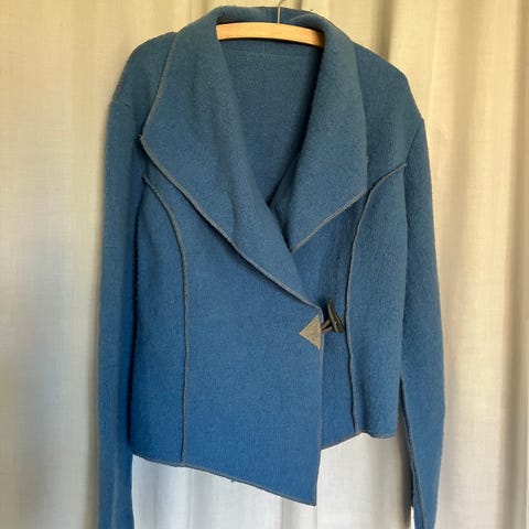 Jeg sælger denne fantastiske blazer fra det svenske mærke Ölands Tröjan. Farven er en utrolig flot og dyb teal/turkis, som virkelig skal ses i virkeligheden!