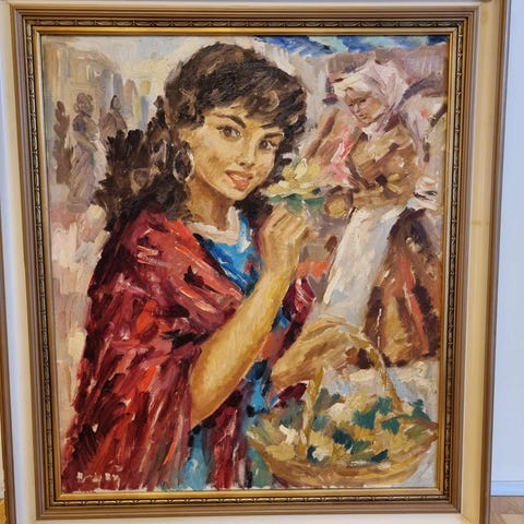Flot signeret ægte maleri med by motiv;