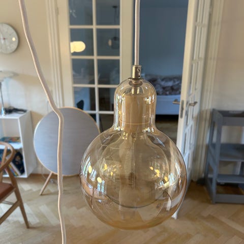 2 stk klassiske Mega Bulb i klar glas med klar PVC ledning. Designet af Sofie Refer fra &Tradition. Håndlavede / mundblæst glas. Lyskilde: E27 fatning. Pære medfølger ikke. Sælges samlet.