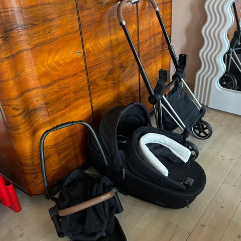 Vi sælger vores Cybex Priam Rose Gold 4-i-1 barnevogn.