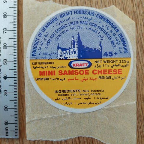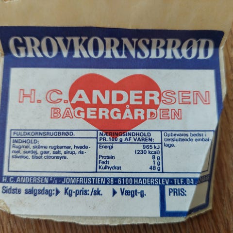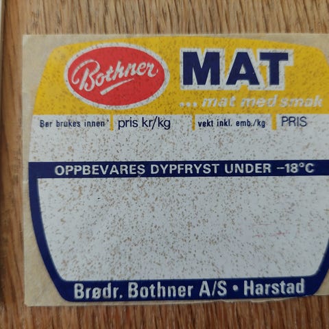 Vareetikette fra 70'er produkt