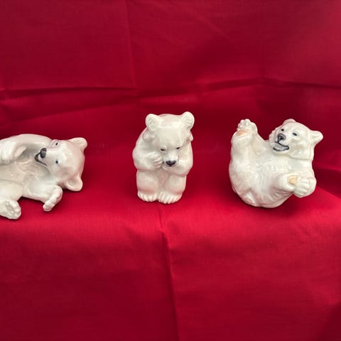 Royal Copenhagen isbjørneunger i stentøj formet som bjørne i legende stillinger. Figurerne er hvide og har glaseret overflade. Velegnet som dekoration på hylde, reol eller bord. Leveres som samlet sæt med begge viste figurer.