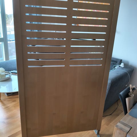 Foldevæg rumdeler med bambus og sten motiv. Skærmen består af flere sammenhængende paneler, der kan foldes efter behov. Begge sider har trykt motiv med bambus, sten og blomster i rolige farver. Egnet som rumdeler eller afskærmning i fx stue, soveværelse eller klinikmiljø.