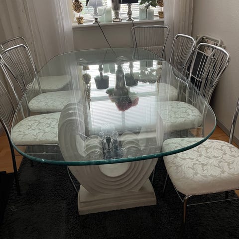 Spisebord, Bord med 1cm tyk glasbordplade højde 75cm længde 120cm bredde 75cm absolut fast pris kan ikke forhandles kr1800 fktg