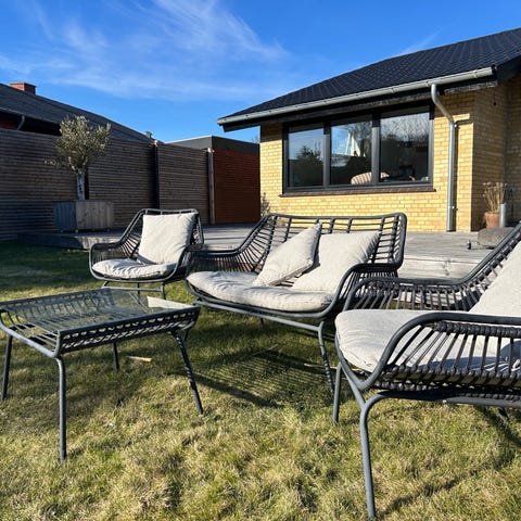 Egnet som loungesæt til terrasse, altan eller have, hvor der ønskes siddepladser til flere personer samt lavt bord til fx drikkevarer og mindre serveringer.