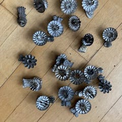 Lyseholder, Metal, 70 år gl., Ni gamle lyseholder til et juletræ sælges.