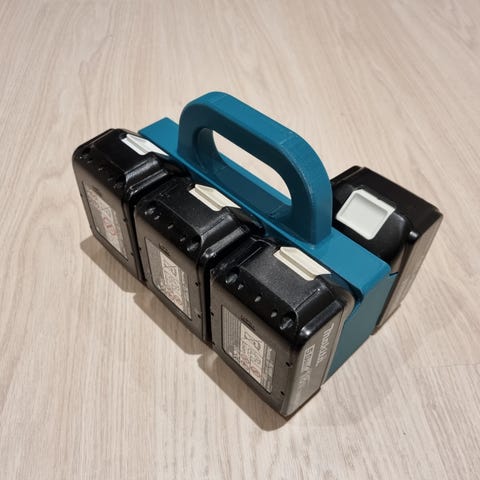 3D printet batteriholder med håndtag til 4 Makita LXT Batterier - de viste batterier medfølger ikke
