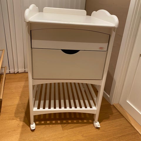 Bemærk at ekstra-tilbehøret på billederne ikke følger med (fx. pusle-liggepude, uro, kuve mv.) men kun selve møbler der sælges, og bemærk at der står den skal repareres fordi at skuffen ikke fungerer optimalt (skal nok skrues/justeres anderledes på).