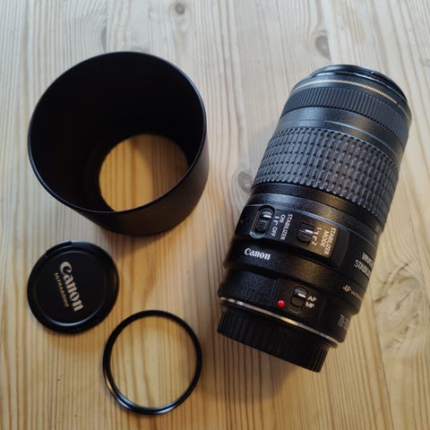 Canon EF 70-300mm f/4-5.6 IS USM telezoom objektiv i sort.