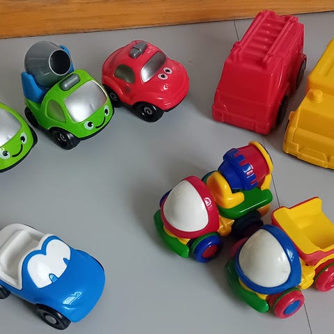Rød bil med dreng kan trækkes op ved at dreje reservehjulet