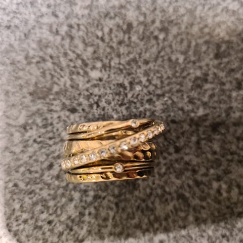 Ring, andet materiale, Dyrberg Kern, Flot ring fra Dyrberg Kern i poleret sølvtonet stål besat med et smalt dobbelt krystalbånd med mørke gråtonede/sorte Swarovski sten.