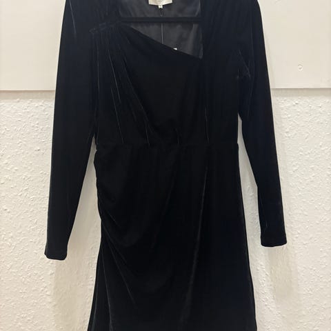 Copenhagen Muse fest/cocktailkjole til kvinder i størrelse XS. Kjolen er sort og fremstillet i polyester. Modellen har lange ærmer, v-udskæring med slå-om-look og udskæring i taljen foran. Længden går cirka til under knæet eller læggen afhængigt af højde. Velegnet som fest- eller cocktailkjole.